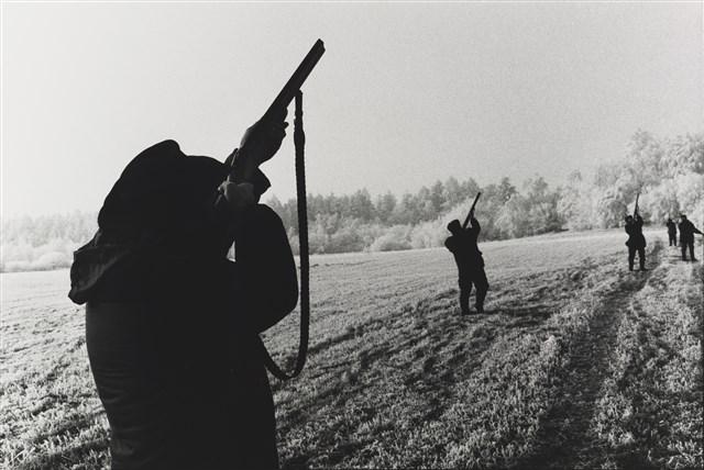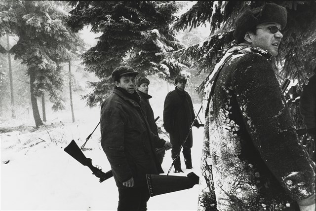 藝術家張雍跨足藝術與商業攝影,在留學捷克後長駐歐洲,透過紀實攝影,捕捉人生百態。〈遠方的獵人〉,是張雍2003年移居至布拉格後,第一個長期的攝影計畫。他跟著獵人進入森林深處,捕捉他們專注沉靜的工作瞬間。他觀察獵人在惡劣氣候下,凍紅、扣住板機的手指,以及在沒有盡頭的冰天雪地,以穩定節奏呼吸所吐出的白煙。一群身穿深色獵裝的獵人們走在雪地裡,就像中國水墨畫宣紙上細膩的墨點,若隱若現,站在遠方看了好一會兒,張雍以攝影紀錄當下的感動,思索該如何向這群粗獷的捷克獵人們解釋東方天人合一的哲理。